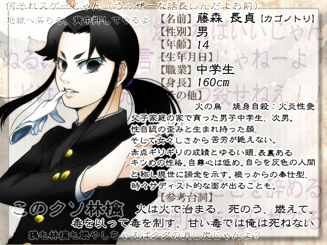 藤森長貞14歳 A型。好物は板チョコ。