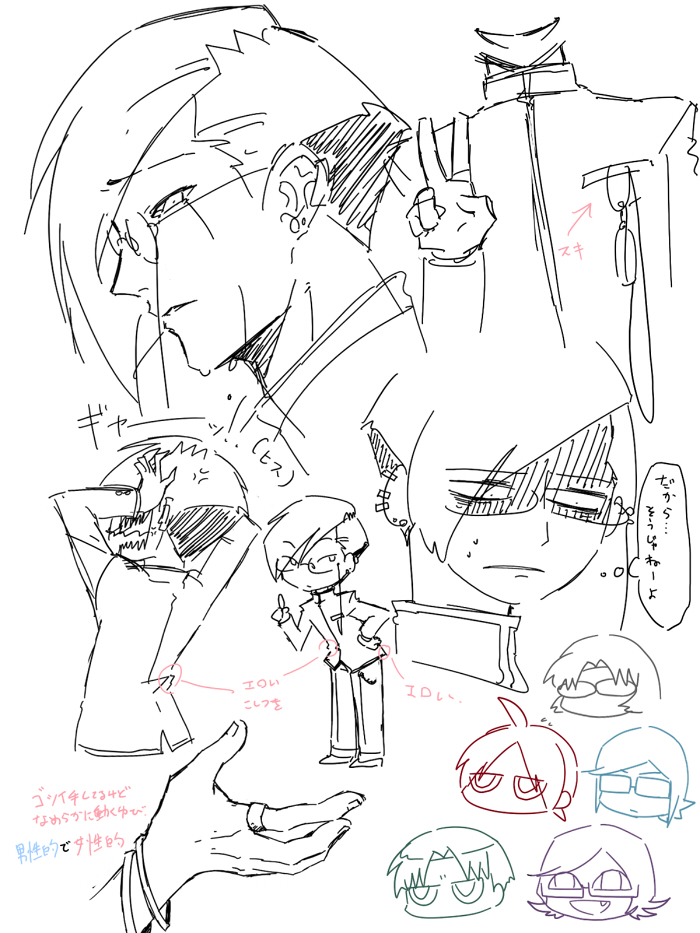 眼鏡と詰襟、長方形のシルエット、シルバーアクセあたりは絵を描き始めた頃からの萌え要素なんで